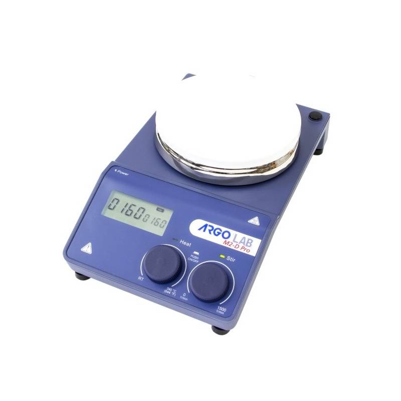 M2-D Pro Agitatore magnetico digitale a microprocessore con piastra riscaldante. Display LCD multifunzione con indicazione in continuo della velocità e della temperatura impostata. 3 modi operativi pre-impostati, controllo e regolazione della temperatura massima di protezione con allarme visivo sul display, controllo funzione” Agitazione”.
