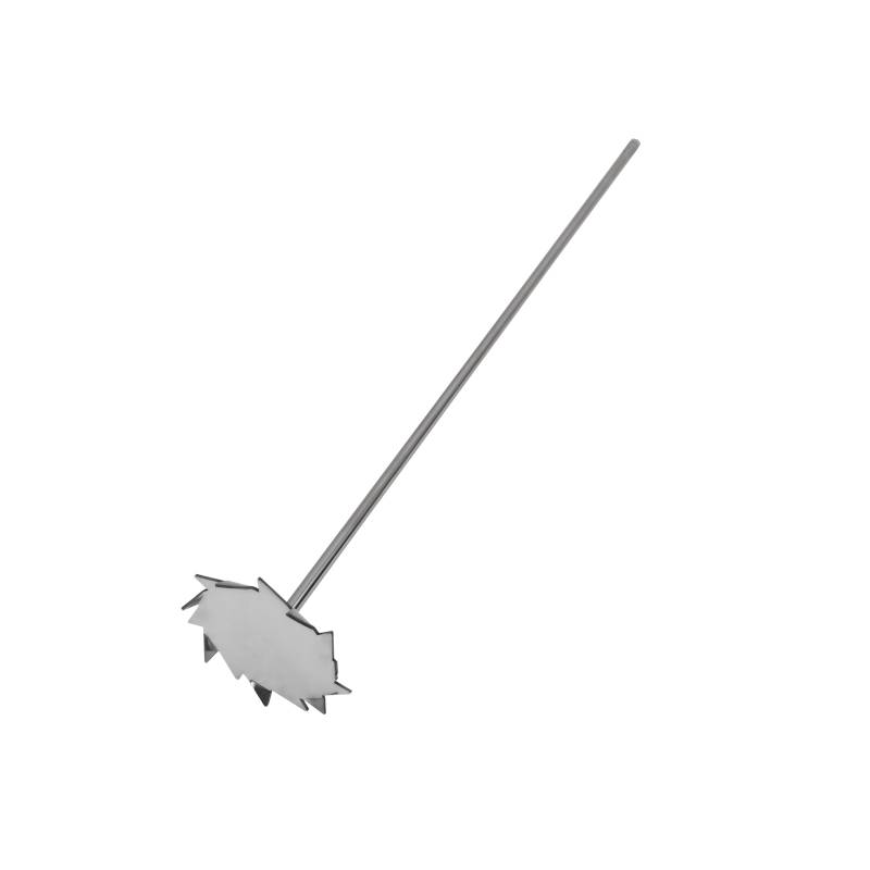 Asta di agitazione a ruota dentata TIPO 6. Serve a generare un flusso rotatorio o turbolento, che è efficace per mescolare liquidi densi o viscosi e per rompere i depositi di sedimenti o di polveri.