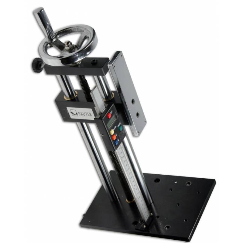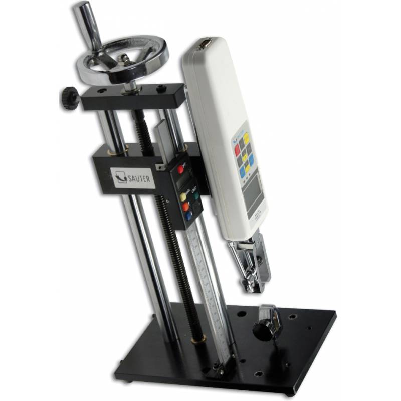 Stativo Manuale Sauter TVL-E adatto per dinamometri fino a max 2.000 Newton con cella di misura esterna. Corsa massima più ampia : 290 mm, passo per giro : 2 mm. Piastra di base dotata di foro per fissaggio morsetti con filettatura M12. Lavora in trazione ed in compressione, posizionato sia in verticale che in orizzontale, con elevata precisione.