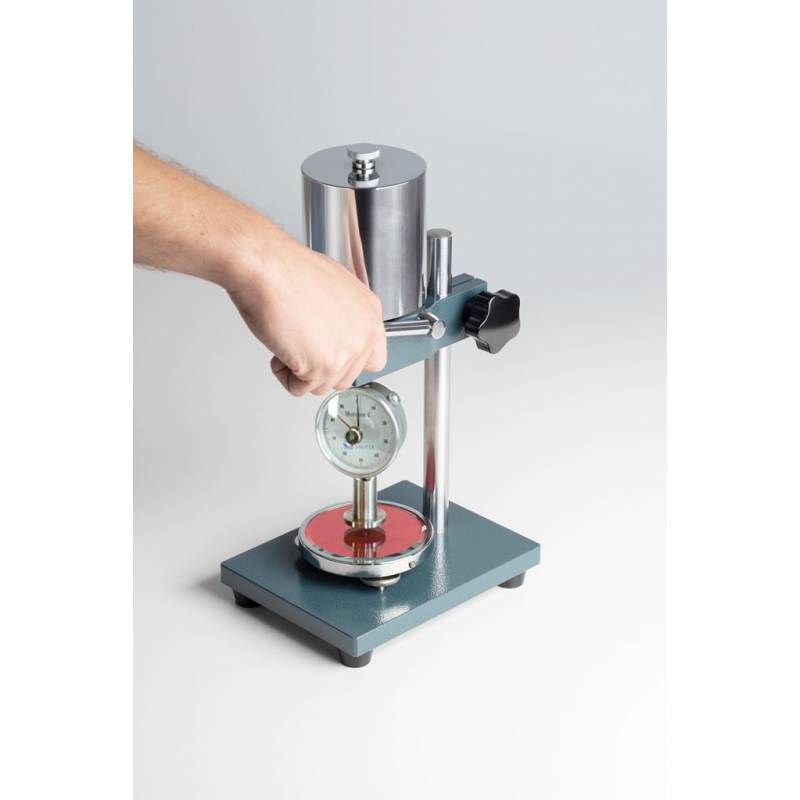 Banco di prova Shore manuale Sauter TI, a leva, per prove di durezza riproducibili con piastra di base in vetro. Utilizzabile con tutti i durometri SHORE , sia digitali che analogici, della linea SAUTER.