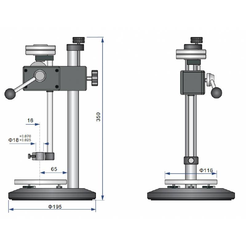 Dati tecnici: Alzata massima: 20 mm; Altezza massima dell’oggetto di prova: 50 mm; Tavolo di prova ∅ 115 mm.