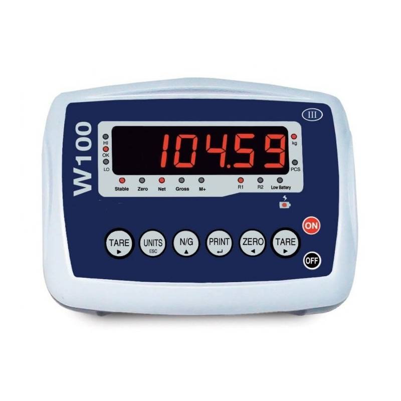 Struttura Indicatore in ABS : Tastiera a membrana meccanica impermeabile con 8 grandi tasti, Piattaforma di pesatura "single point", cella di carico in alluminio a norme OIML R60 C3, IP65.