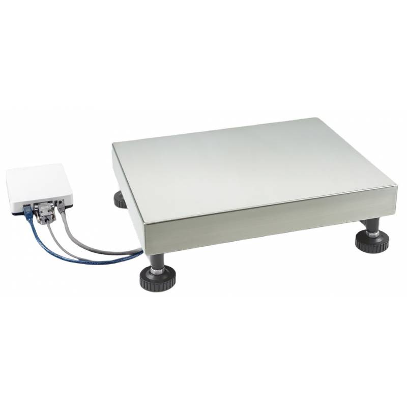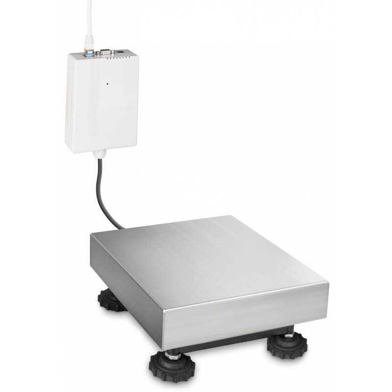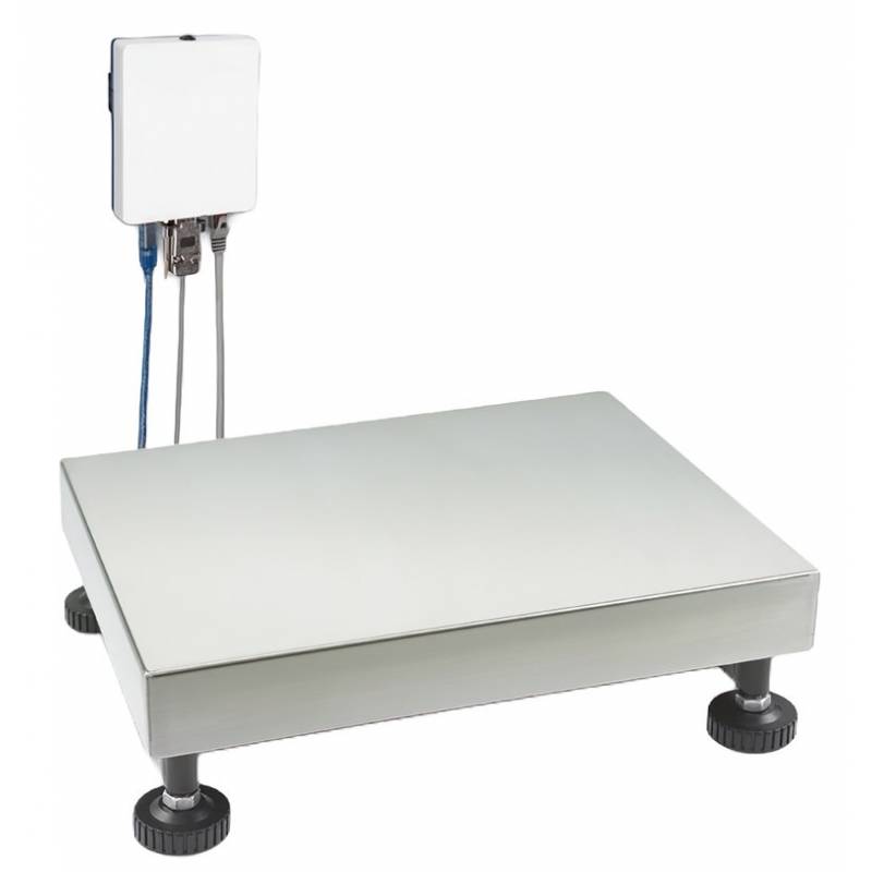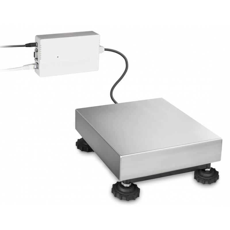 Piattaforma industriale modulare con gestione del peso tramite trasmettitore digitale convertitore A/D. Interfaccia USB e RS-232 di serie, Lan Ethernet o Bluetooth in opzione. Sistema già calibrato, acquisizione dei dati di pesatura su reti, PC, PLC. Software di comunicazione e registrazione dati incluso di serie, compatibile con SAP, Oracle ecc.