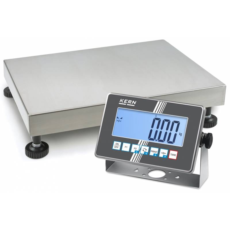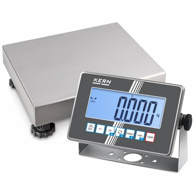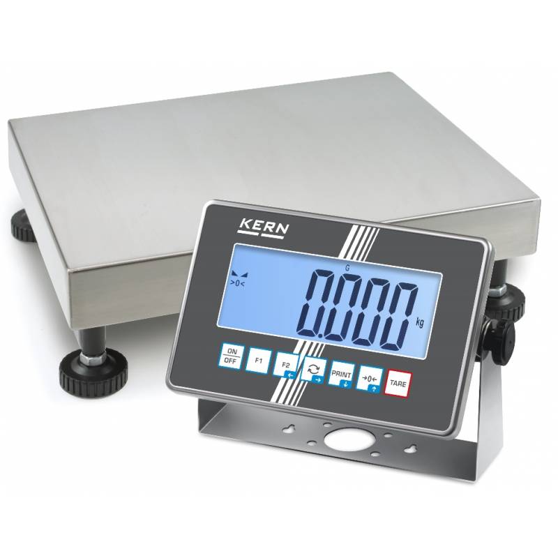 Le bilance a piattaforma single-range Kern IXC sono state ottimizzate per l'uso in ambienti industriali difficili. Sono dotati di piatto di pesata IP65 e display IP68 collegato alla piattaforma di pesatura tramite un cavo di 2,5 m.