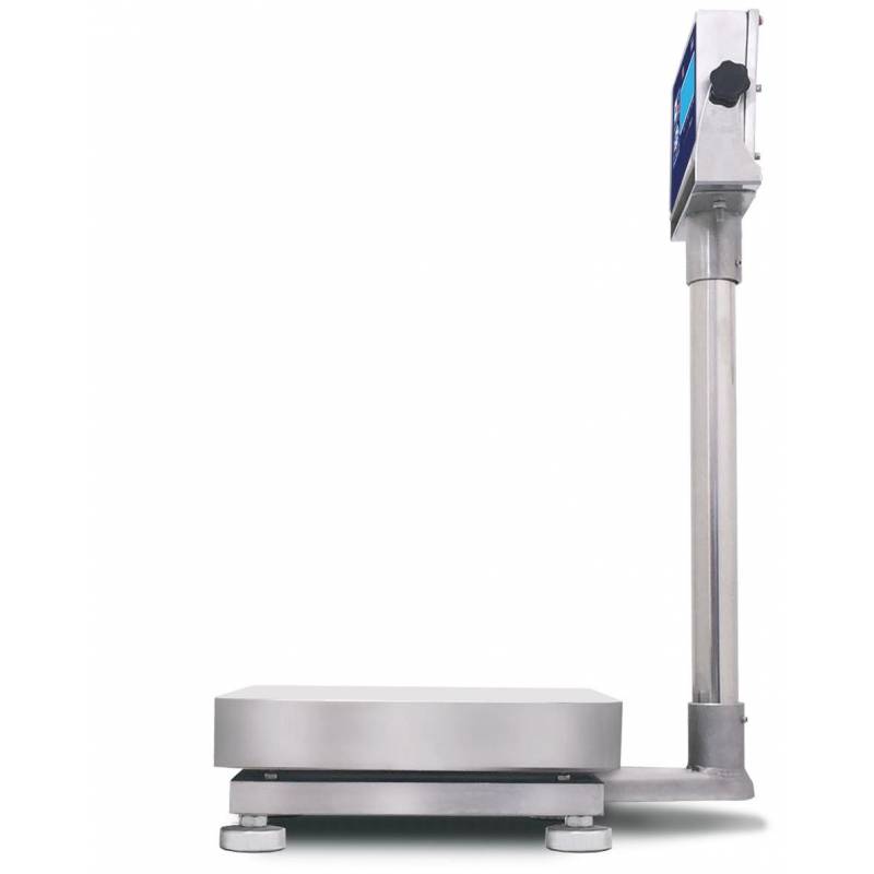Struttura: interamente in acciaio inox per ambienti umidi, cella di carico single point C3,Tastiera impermeabile con membrana meccanica, tasti a rilievo. Piano di pesatura in acciaio inox lavabile. Display: Grande LCD RETROILLUMINATO 25mm. Alimentazione: Batteria ricaricabile autonomia 80h retroilluminazione spenta, 50h retroilluminazione accesa e alimentatore esterno 12V-500mA. Accessori inclusi: Batteria ricaricabile, Alimentatore, Pedini regolabili in acciaio inox con gomma antiscivolo, Livella, Supporto visore regolabile in acciaio inox per montaggio colonna. Colonna Altezza 660 mm.