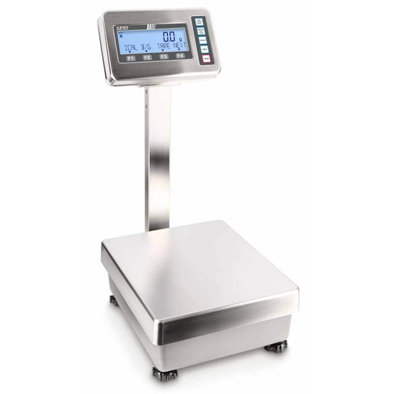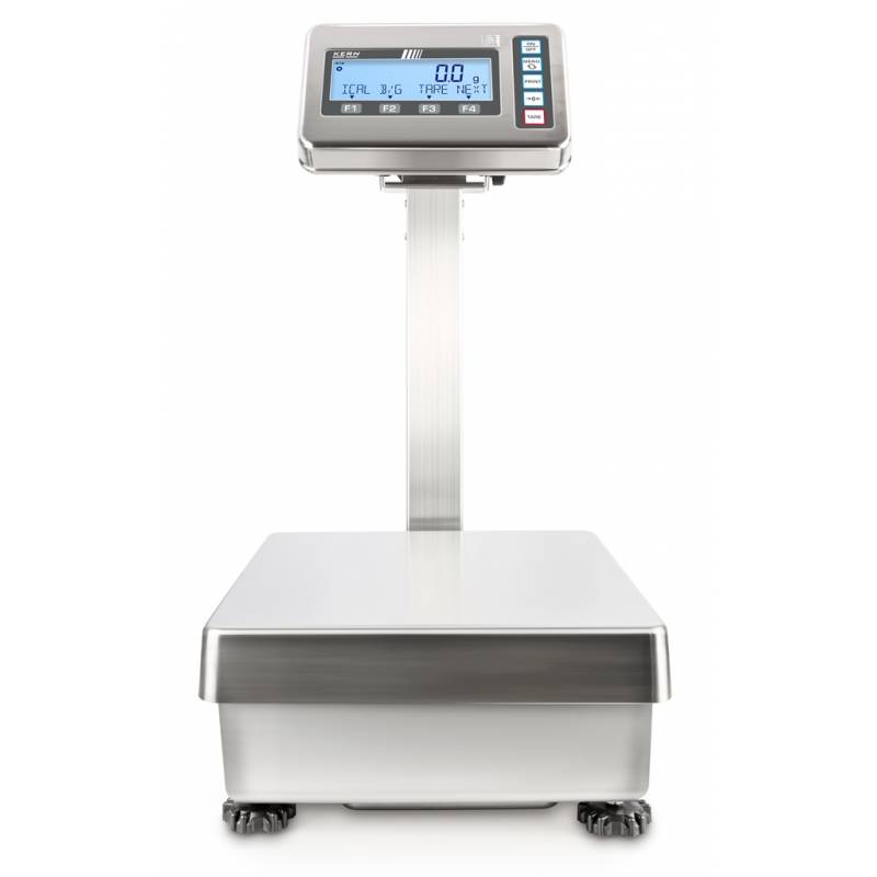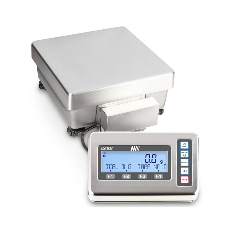 Bilancia KERN FES / FEJ FEJ con terminale di pesatura in acciaio inox e classe di protezione IP65, igenica facile da pulire. Struttura in metallo, robusto e stabile. I tasti funzione configurabili a piacere consentono di personalizzare le impostazioni della bilancia. Funzionamento intuitivo grazie alla riga informativa sul display. Protezione antipolvere e antispruzzo IP65 (secondo EN 60529)