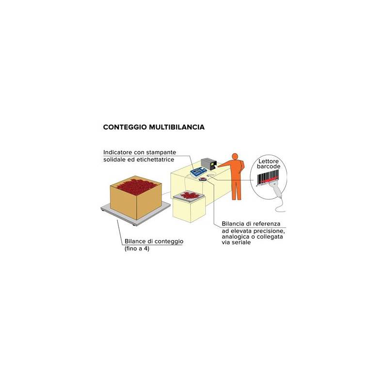 - Connettività multibilancia: È possibile collegare fino a 5 bilance indipendenti, facilitando il conteggio e la totalizzazione di quantità in diverse unità di misura come pezzi, litri, Newton, e metri.