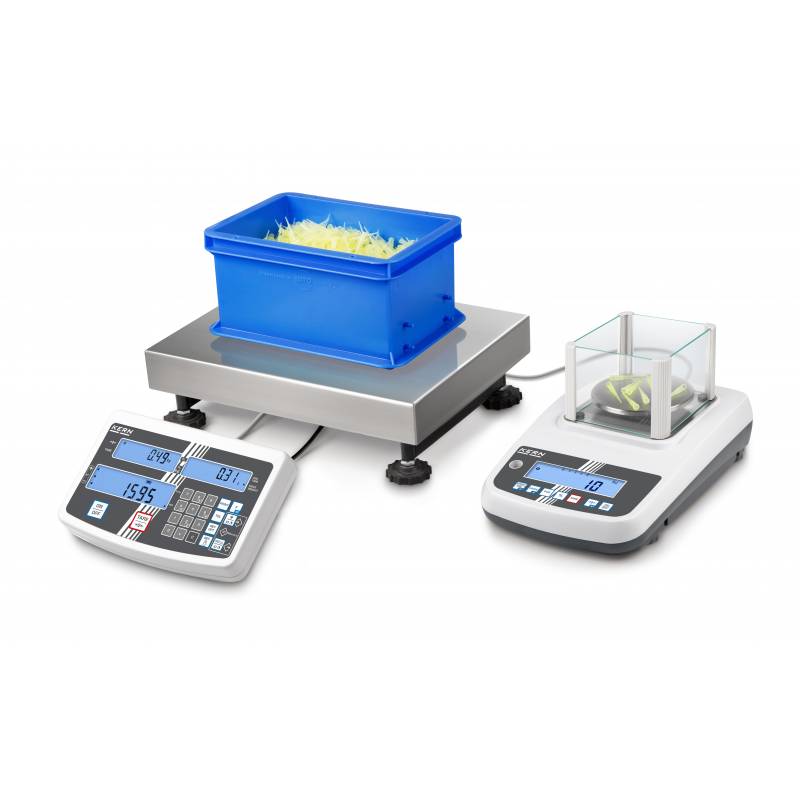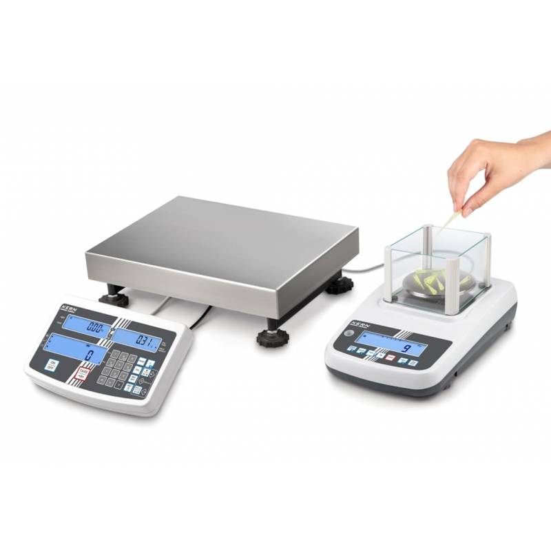 Bilancia Contapezzi Kern CCS piattaforma + bilancia di riferimento. Sistema di conteggio per contare grandi quantità a partire da pezzi di 0.01 grammi e fino a 150 kg. Il collegamento tra bilancia di campionamento e piattaforme di varie dimensioni consente di risolvere ampie necessità del settore industriale dove sono presenti sia minuteria che pezzi...