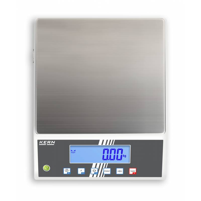 Kern FCB nuova versione, bilancia da banco chechweighing con interrogazione e controllo remoto della bilancia tramite PC o sistemi CRM/ERP grazie al protocollo di comunicazione integrato. Utilissima per il dosaggio e miscelazione di componenti con avviso acustico e ottico su due soglie programmabili.