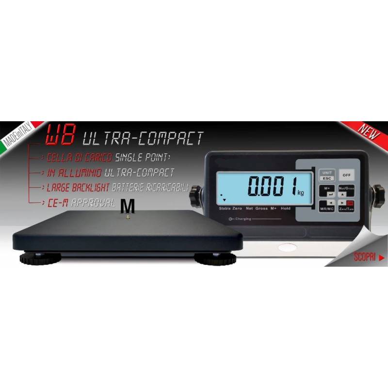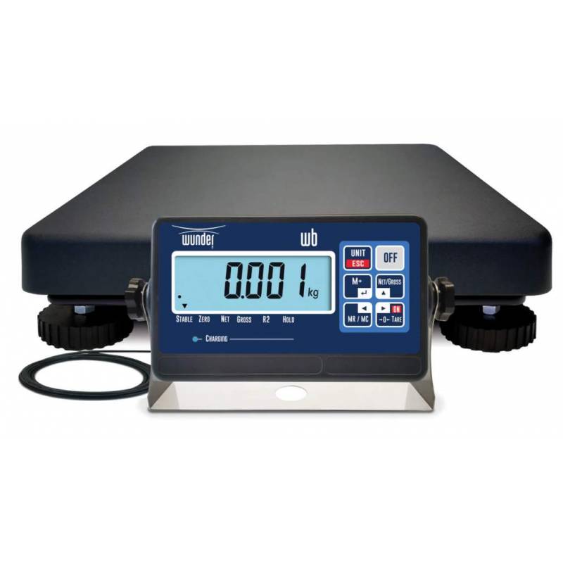 Bilancia digitale WUNDER WB, a cella di carico, professionale, con basamento in alluminio rinforzata robusta e compatta per linee di produzione, leggera e portatile per qualsiasi ambiente. Sistema di pesatura preciso e durevole a cella di carico C3 e non a sensori sugli angoli. Grandi piedini in gomma regolabili per migliore stabilità. Non linearità ≤0.01% del fondo scala.