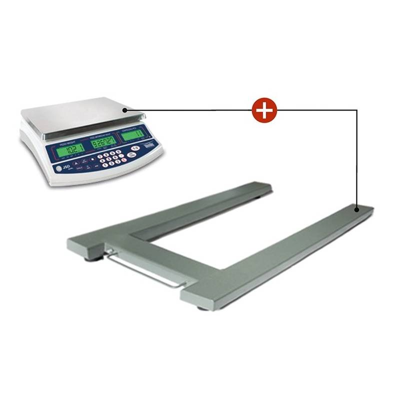 La bilancia pesapallet con contapezzi serie JWP-U è ideale per la pesatura e conteggio di pezzi già caricati su pallet. Il ponte di pesata a forma di -U- è dotato di ruote e maniglia può essere facilmente spostato in magazzino. 4 precisissime celle di carico IP67 classe C3 si abbinano alla bilancia di riferimento con triplo display e risoluzione da 0.1 grammi. Massima mobilità per inventario.