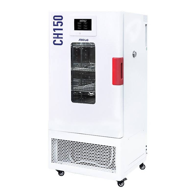 Camera climatica da laboratorio ARGOLab CH 150 CLIMATEST con volume utile 150 Litri. Campo di lavoro: -10 ÷ 85 °C (senza umidità) e 10 ÷ 70 °C (con umidità) – da 40 a 95 %RH. Stampante integrata per l’output dei parametri impostati e rilevati, fornita di serie. Foro di passaggio per sensori esterni per ampliare il monitoraggio. Completa di ripiani INOX e vasca per acqua di alimentazione.