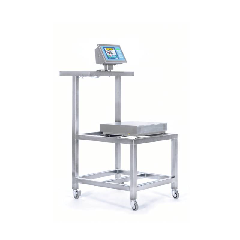 Carrello con 4 ruote ( di cui 2 con freno) con ripiano alto tra 64,5 e 68 cm dal pavimento per bilance e sistemi di pesatura con piattaforme 40x40, 40x50, 50x60 o 60x60 cm. Versione in acciaio verniciato (per tutti i magazzini standard) oppure in acciaio INOX per ambienti gravosi, lavorazioni di alimentari e industria farmaceutica. Su richiesta anche con compatibilità ATEX, antideflagrante.