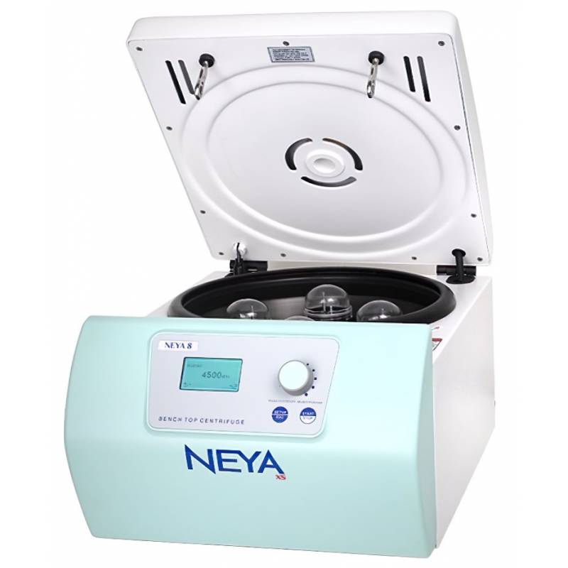Centrifuga NEYA 8 Basic da banco, Ventilata, con Funzione limitatore di velocità di sicurezza. Controllo a microprocessore e display multicolor retroilluminato con visualizzazione contemporanea di tutti i parametri di centrifugazione.