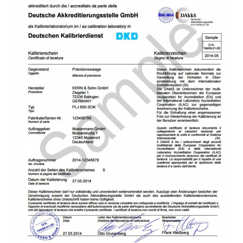 Certificato di taratura LAT DakkS per transpallet pesatori serie VHB, fino a 2 tonnellate.