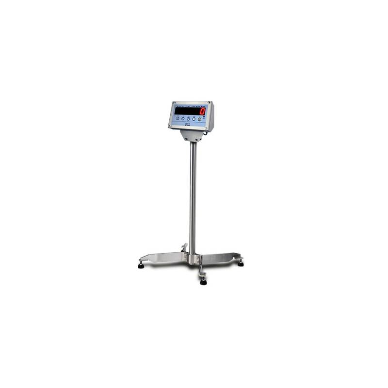 Colonna di sostegno in acciaio Inox per indicatori di peso. Base 450x450 cm con altezza tubo da pavimento 917 mm. Una volta montato l'indicatore, questi si troverà a 110 cm da terra.