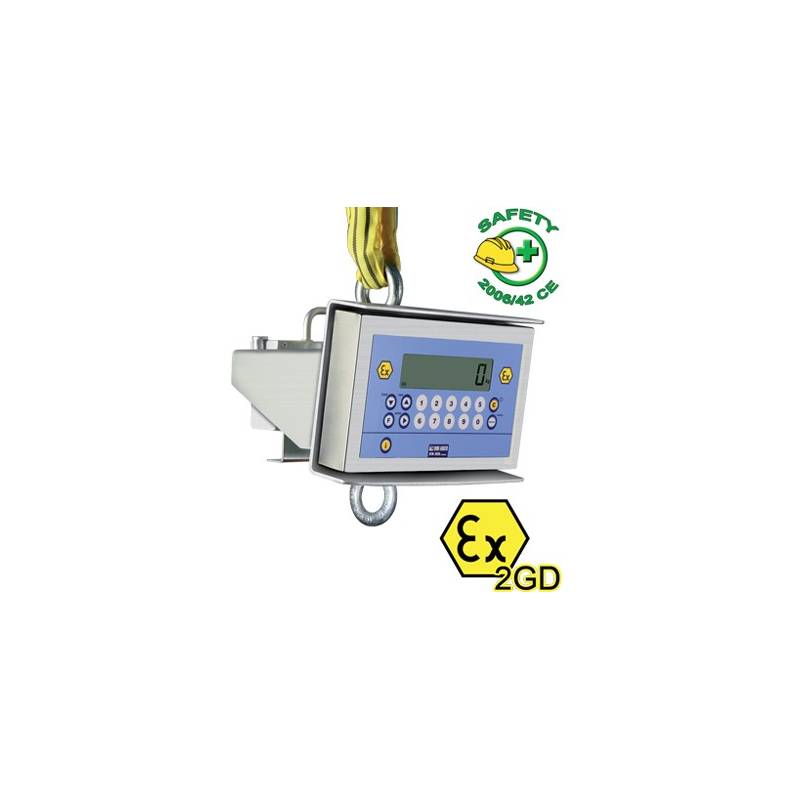Dinamometro certificato ATEX serie MCWX2GD per applicazioni di pesatura sospesa in zone classificate a rischio di esplosione ZONA 1 e 21, 2 e 22. Quattro versioni con portata da 600, 1500, 3000 e 6000 kg. Disponibile anche omologato e conforme norme metrologiche. Struttura INOX con protezione IP65 ha una precisione dello 0.1 % del fondo scala. Batteria estraibile e caricabatterie.