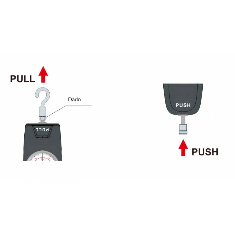 Doppia scala di lettura: Newton e kg leggibile contemporaneamente; Visualizzatore girevole per facilitare l'aggiustaggio dell'apparecchio; Funzione peak-hold grazie all'indicatore scorrevole; Puó essere montato su tutti i banchi di prova manuali. Azzeramento premendo un solo tasto; Fornito con valigetta robusta; Composizione standard: come nell'illustrazione.