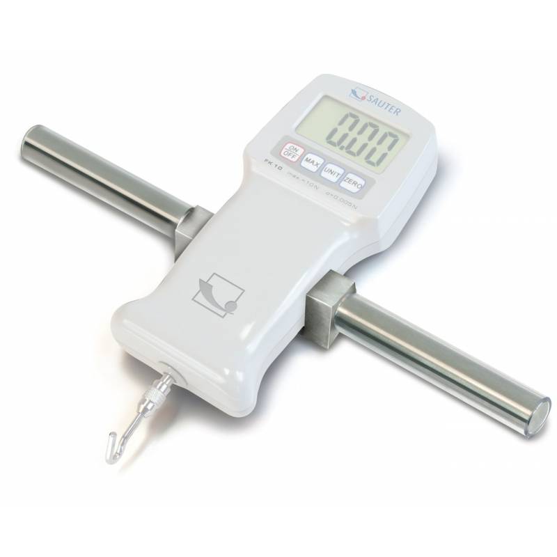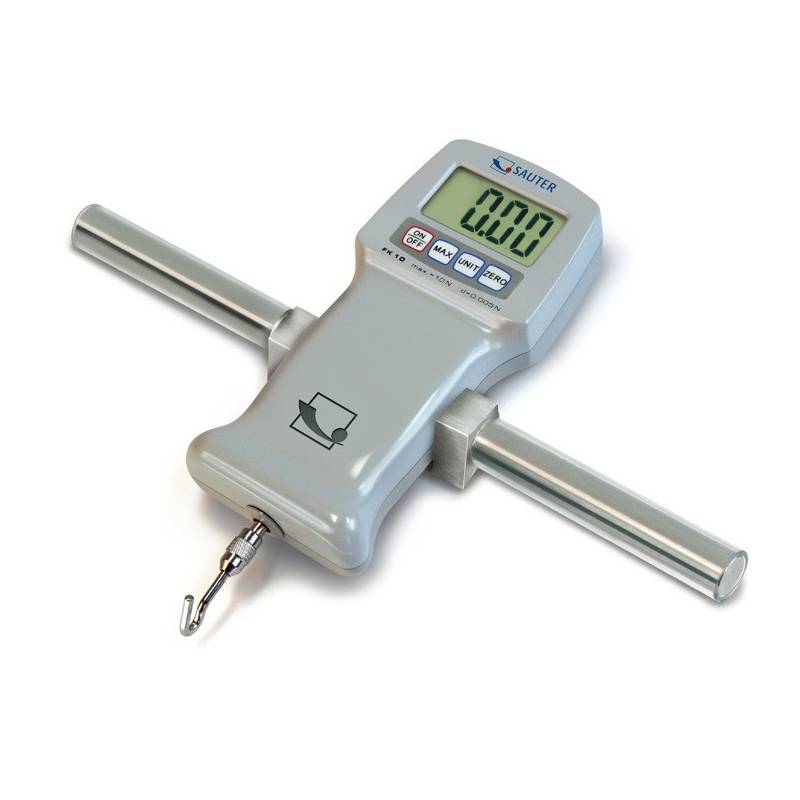 La fornitura include: Dinamometro digitale portata 500 newton ( 50 kg ) con misure di forza in traino e spinta , maniglia in acciaio inox con involucro antisdrucciolo, gancio, punta piatta per misure in spinta, punta conica, prolunga 9 cm, Piastra circolare diametro 49 mm per prove di spinta.