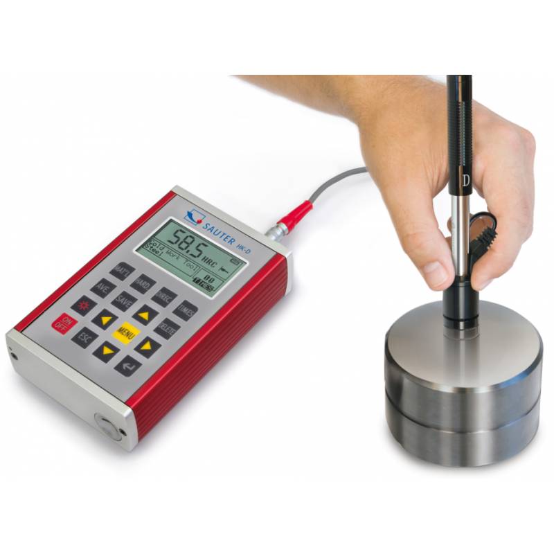 Durometro per metalli Sauter HK-D per prove di durezza dei metalli Leeb. Involucro metallico e memorizzazione di 600 dati con uscita USB e valigia di trasporto.Statistiche di misurazioni consultabili sul display, è idoneo per tutti i metalli. Schermo grande su cui sono visualizzati tutte le funzioni e parametri. Visualizzazione diretta e conversione in scale di durezza HRA, HRB, HRC, HV, HB, HS.