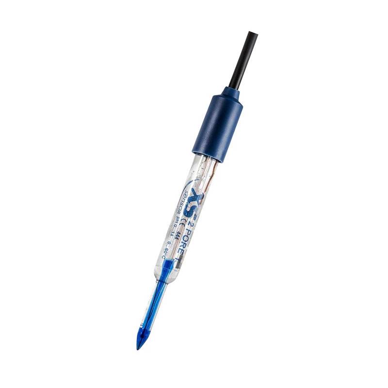 La serie di elettrodi DOUBLE PORE , con corpo in vetro a doppio foro aperto ed una punta a penetrazione da 4,5 o 6 mm accoglie totalmente i bisogni di chi deve misurare il ph nelle carni, formaggi e campioni contenenti proteine. Super durevole, qualità Svizzera e prezzo a puntino per uno degli elettrodi più venduti e diffusi in Italia. Abbinabile a qualsiasi piaccametro in commercio.