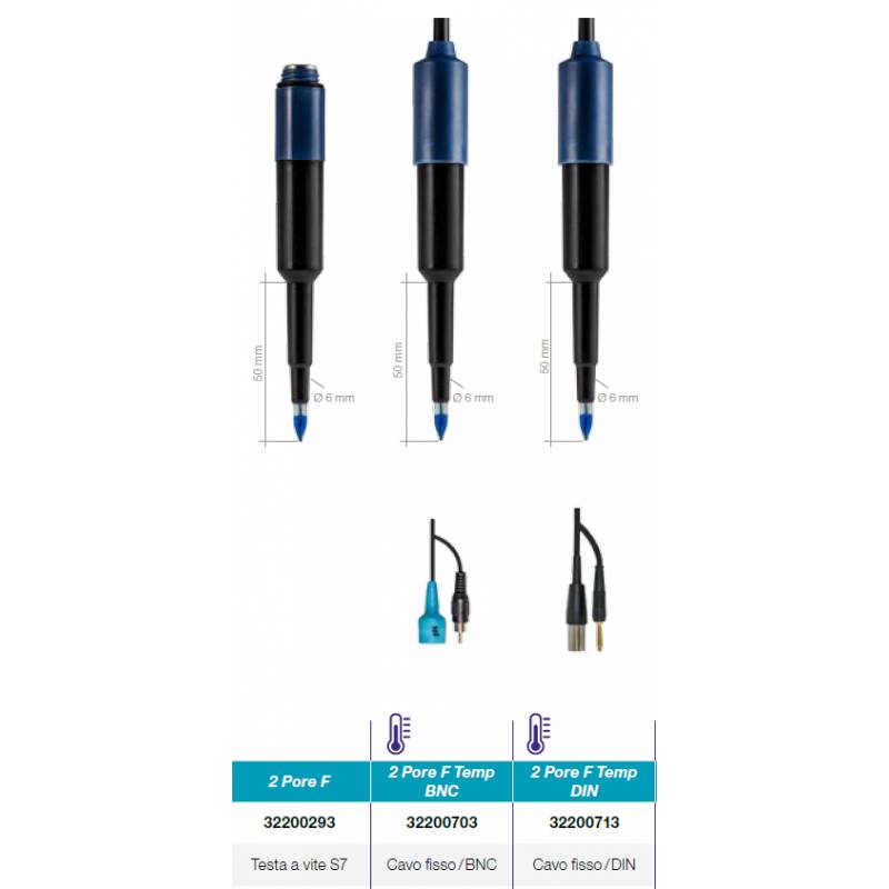 Elettrodo ph con corpo in plastica (peek) e doppio foro aperto, ideale per il settore alimentare e misure a penetrazione. Tre versioni : testa S7, spina BNC, spina DIN. Misurabile tutto il range di ph e temperature tra lo zero e +60 gradi centigradi.