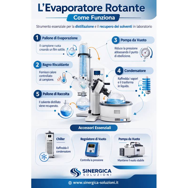 L’evaporatore rotante è uno degli strumenti più utilizzati nei laboratori chimici e farmaceutici per la distillazione e concentrazione di solventi. Vediamo Come Funziona e Come Sceglierlo.
