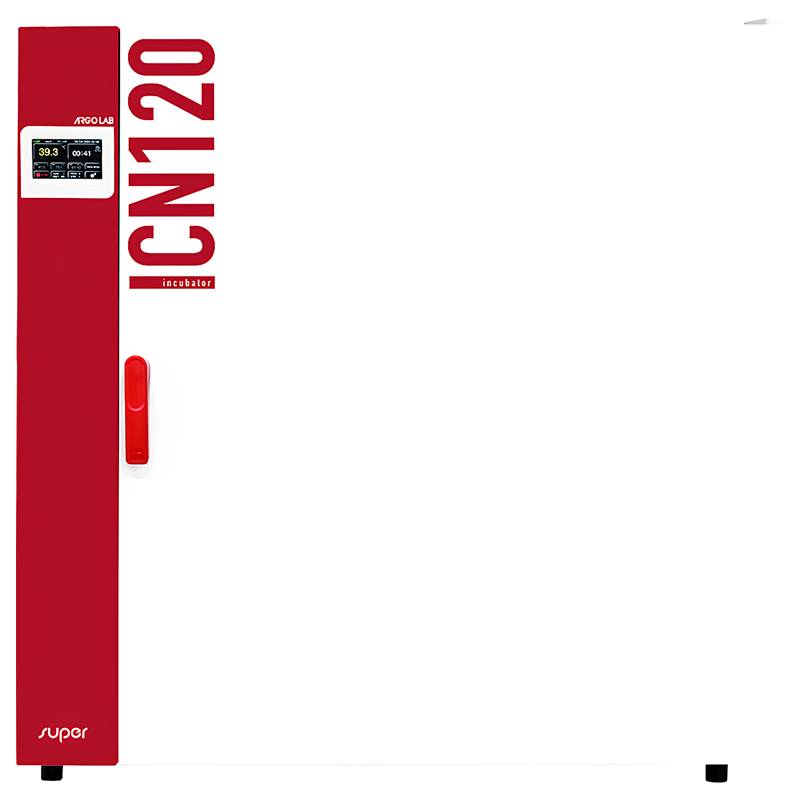 ICN 120 incubatore a circolazione d’aria naturale ArgoLab. Campo di lavoro: da 5°C oltre temperatura ambiente fino a 70°C. Volume utile 120 l. Variazione della temperatura nel tempo a 37°C: ±0,3°C. Uniformità della temperatura nello spazio a 37°C: ±0,5°C. Porta esterna in acciaio inox e porta interna in vetro per l’osservazione dei campioni.