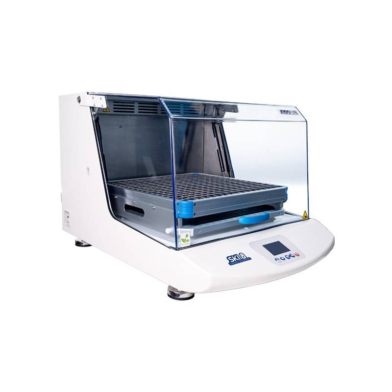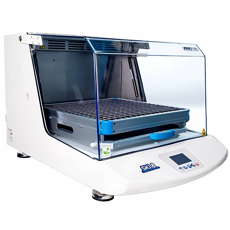 L’SKI 8 è dotato di una precamera di riscaldamento e di un sistema di circolazione dell'aria forzata, che garantiscono una distribuzione omogenea della temperatura in tutta l'area di lavoro. Le funzioni di agitazione e termostatazione sono completamente indipendenti, consentendo di utilizzare l'unità come agitatore o incubatore separatamente. La cupola in plexiglass di 8 mm di spessore permette una visione chiara dei campioni, minimizzando la dispersione di calore. La cupola è provvista di molle a gas per un'apertura facilitata e di un interruttore di sicurezza.