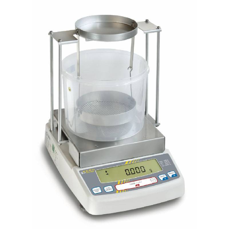 Kit per la determinazione di densità di liquidi e solidi per bilance di precisione KERN PBS. La fornitura include : portapiatto di bilancia, Piatto universale della bilancia, Basetta per recipiente, Recipiente, Supporto per piatto bilancia 4 pezzi, galleggiante in vetro.