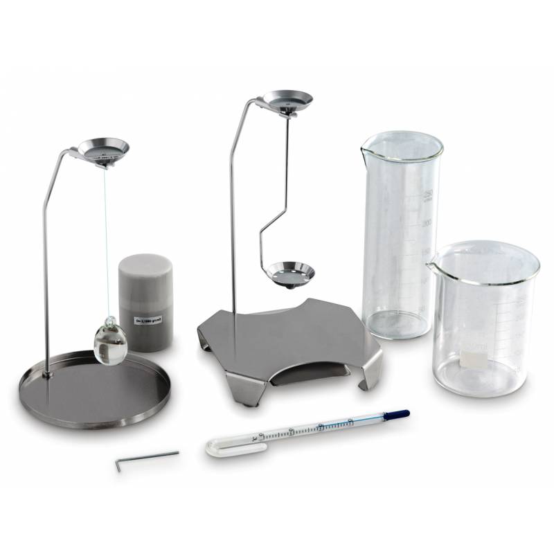 il Kit include: Sostegno per cestello immergibile; Cestello immergibile universale per corpi solidi galleggianti e cadenti; Basetta per recipiente in vetro; Sostegno per galleggiante; Cilindro graduato in vetro per determinazione di densità di corpi solidi; Cilindro graduato in vetro per determinazione di densità di liquidi; Termometro; Galleggiante con scatola per conservazione; Chiave a brugola