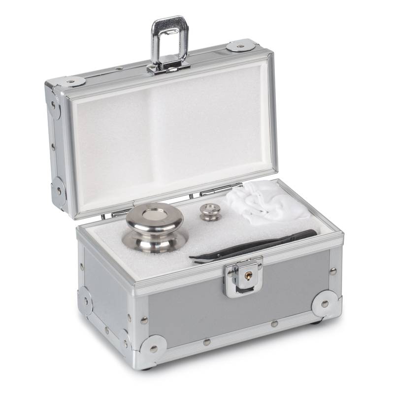 Safety Set : contiene 1 peso 5 g in E2 + 1 peso 50 g in E2 completi di certificato e valigetta in alluminio. Due pesi idonei per calibrazione, controllo e monitoraggio della vostra bilancia. Per controllare la sensibilità, cioè la corretta regolazione dello specifico strumento, e un piccolo peso di calibrazione per controllare all'estremità inferiore della portata, il peso minimo del campione.