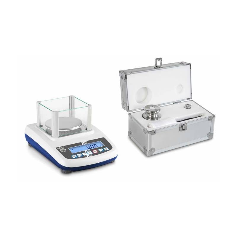 peso di prova per controllare la sensibilità, cioè la corretta regolazione della vostra bilancia, e un piccolo peso di calibrazione per controllare all'estremità inferiore dell'intervallo di pesata, il cosiddetto peso minimo del campione.
