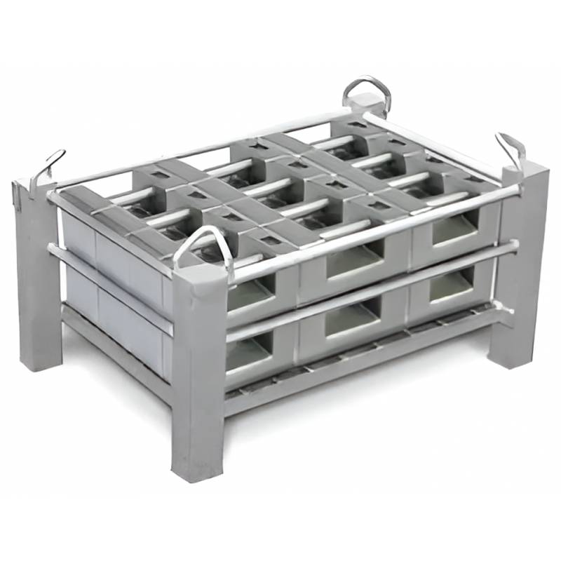 Masse porta pesi da 20 kg in M1. Progettate per contenere fino a 24 masse OIML da 20 kg ciascuna, per un totale complessivo di 500 kg. Finalizzate a conservare e trasportare facilmente le masse in un unico contenitore, ottimizzandonde la manipolazione e riducendo i rischi di danni. Realizziamo porta-pesi e ceste su misura dotate di agganci per sollevamento per masse rettangolari e/o cilindriche.