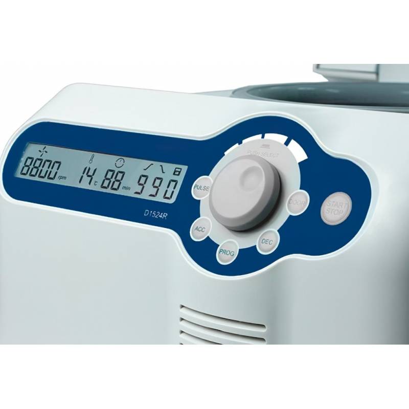 MicroCentrifuga REFRIGERATA D1524R con Rotore. Temperatura impostabile da -20 a +40°C. Funzione "Precool", per il raffreddamento rapido della centrifuga. Motore ad induzione ultra silenzioso, ampio display LCD retroilluminato e coperchio. Velocità: impostabile da 200 a 15.000 rpm, RCF impostabile fino a 21.380xg. Capacità massima di carico 24 x 2 ml.