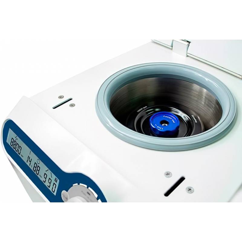 Microcentrifuga refrigerata da banco ad elevate prestazioni, ridotto ingombro e di facile utilizzo anche grazie alla modesta altezza di accesso. Temperatura impostabile da -20 a +40°C, con incrementi e decrementi di 1°C. Funzione "Precool", per il raffreddamento rapido della centrifuga.