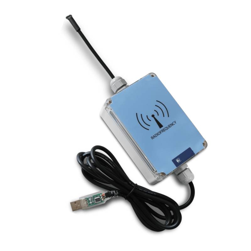 Interfaccia Radiofrequenza 868MHz per collegamenti tra PC e indicatore di peso utilizzando una porta USB o seriale RS232. Può acquisire i dati fino a 50 bilance ad una distanza di 70 metri all'interno o 150 all'esterno. Alimentato tramite indicatore, pc oppure da rete. Ridotto rischio di interferenza con altri sistemi radio già presenti.