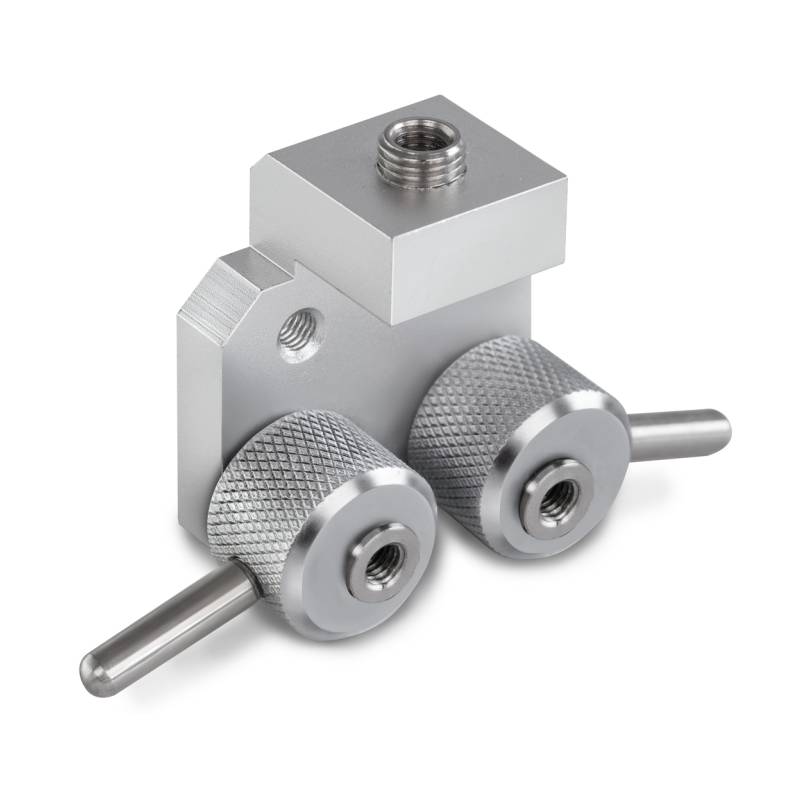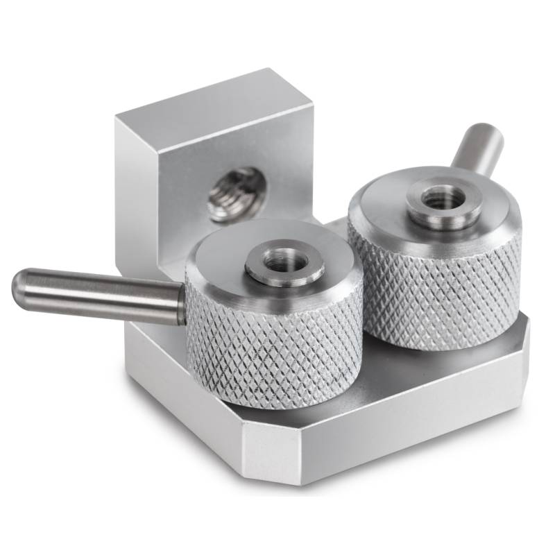 Morsetto per nastri Sauter A 04 con maggiore larghezza di apertura tra le ganasce che copre il range da 0 a 6 mm. Utilizzabile per prove di trazione fino a 500 Newton. Filettatura M6. Sicurezza contro i sovraccarichi: 150 % di [Max]. Si monta senza utensili mentre l‘apertura e la chiusura delle ganasce avviene attraverso le leve poste sul lato superiore.
