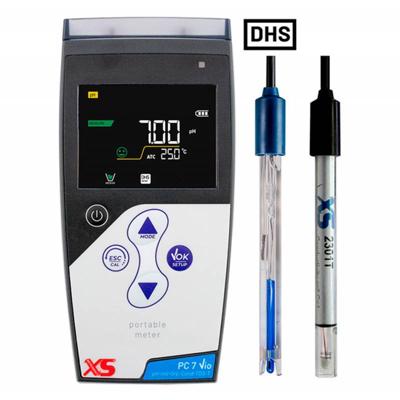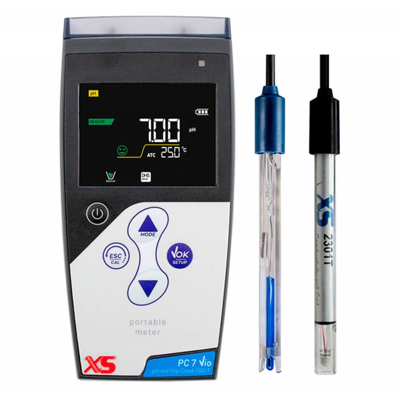 Misuratori portatili multiparametro 6 in 1 XS PC 7 Vio, hanno la capacità di misurare pH, mV, ORP - Redox, conducibilità, solidi disciolti totali (TDS) e temperatura. Made in Italy, Garanzia 5 anni. Il nuovo display ad alta risoluzione mostra tutte le info utili, tra cui i tamponi usati per la calibrazione. Guida in linea per un esperienza di utilizzo intuitiva ed estremamente performante.
