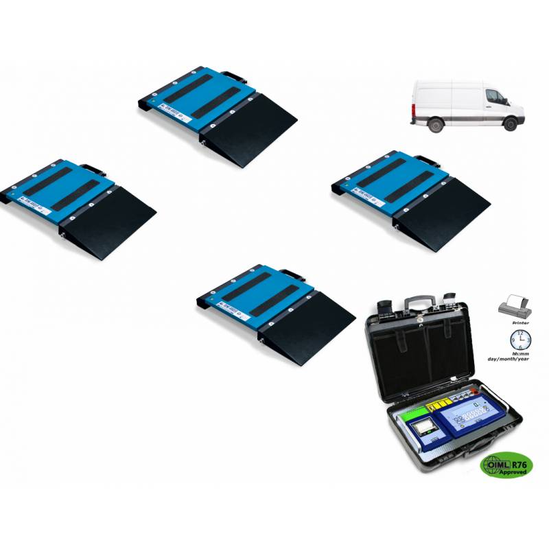 Pesa per furgoni e veicoli a 2 assi pronta all'uso. OMOLOGATA CE di serie , il peso rilevato è Certificato per qualsiasi utilizzo legale. Configurabile come bilancia pesa auto, veicoli di ogni tipo e automezzi a 4 punti di appoggio. Portata complessiva 6, 12 e 24 t. Realizziamo anche versioni personalizzate e su misura con capacità e numero di piattaforme variabili. Costruite da noi in Italia.