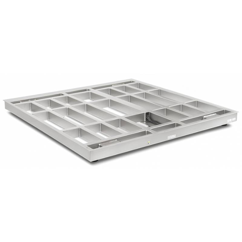 Si tratta di piattaforme di pesatura elettroniche in acciaio INOX a basso profilo con piano rimovibile equipaggiate con 4 celle di carico omologate C3 oppure C6 in acciaio INOX IP68.