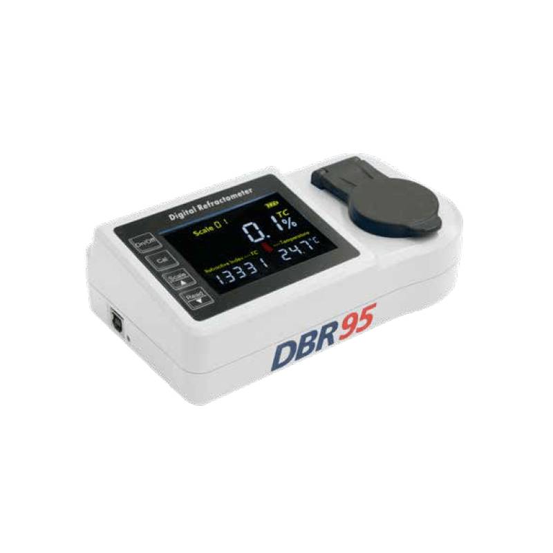 DBR 95 è il rifrattometro a lettura digitale ideale per il laboratorio e la produzione. Semplice da usare, basta una goccia di campione sul prisma di lettura e sul display comparirà la concentrazione, basta con scale ottiche di difficile valutazione. Adatto anche con campioni torbidi o colorati.