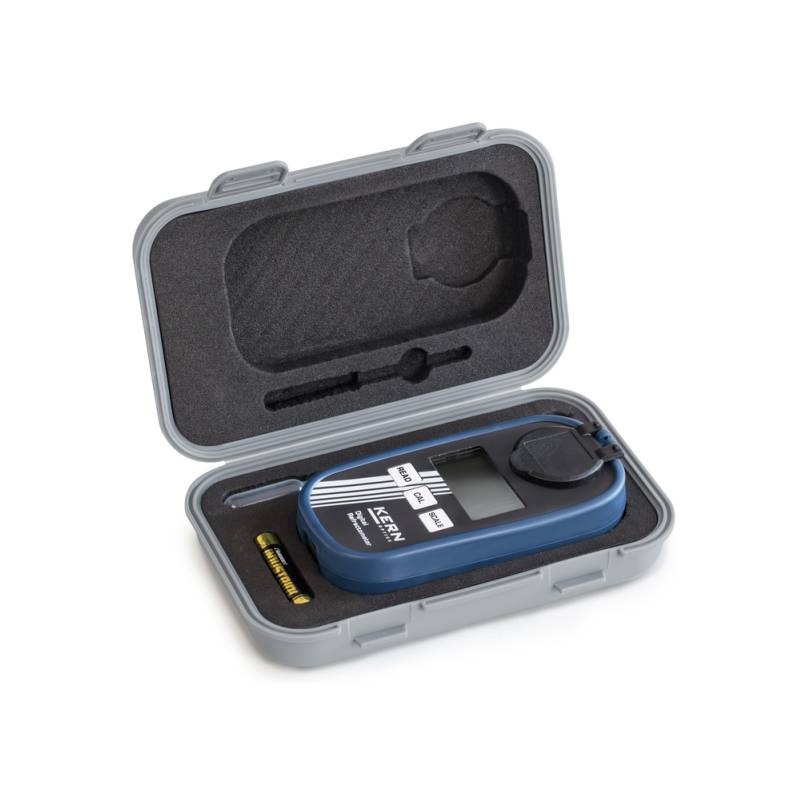 Rifrattometro digitale per Uva e vino serie Kern ORF-W, per la misurazione del contenuto di zucchero nell'uva. Strumento professionale per determinare la percentuale di alcool del vino. Inoltre consente di determinare il livello di maturità (fruttosio) dell'uva. Principali ambiti di applicazione: Aziende vinicole, Agricoltura, Vigneti, frutteti,...