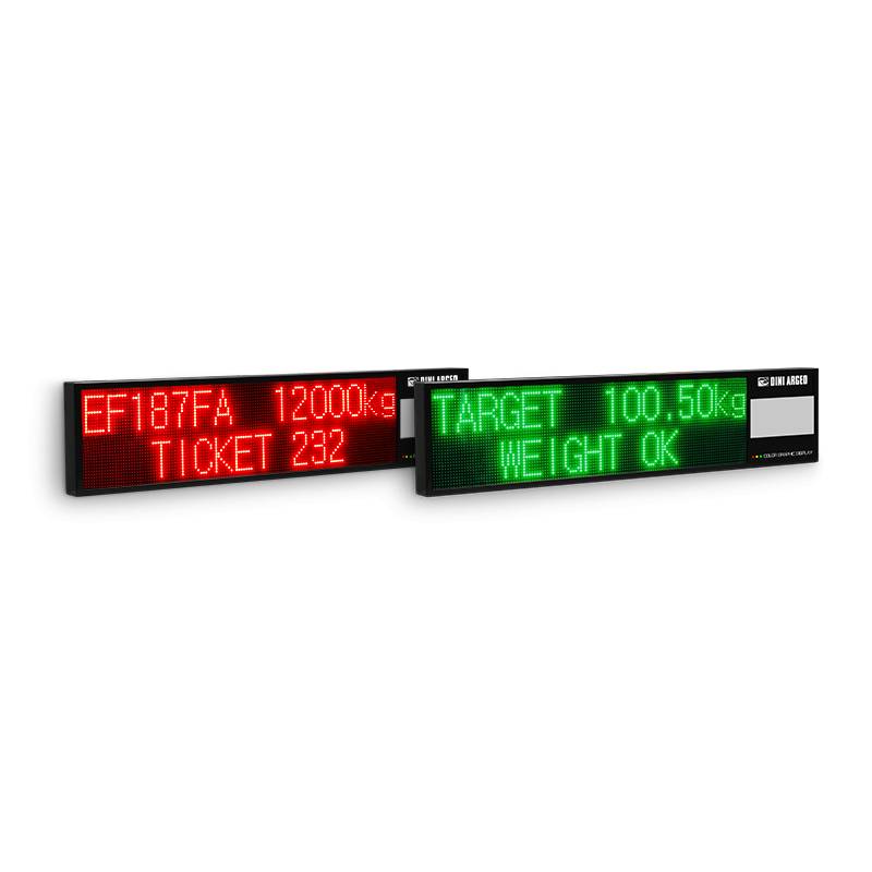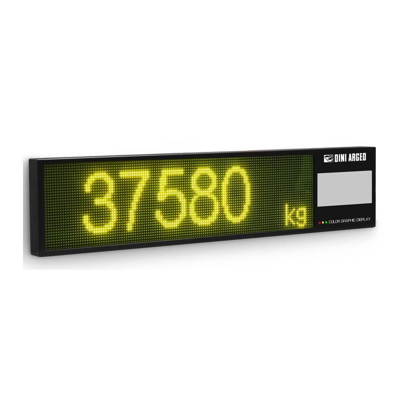 Ripetitore alfanumerico con visualizzazione del peso lordo e peso tara con gestione del colore della visualizzazione (rosso, giallo o verde), sincronizzato con l'indicatore di peso collegato. Il display a matrice di LED RGB permette la visualizzazione di messaggi completamente personalizzabili per guidare e facilitare l’operatore, ideale per dosaggi, controllo peso e pesatura veicoli.