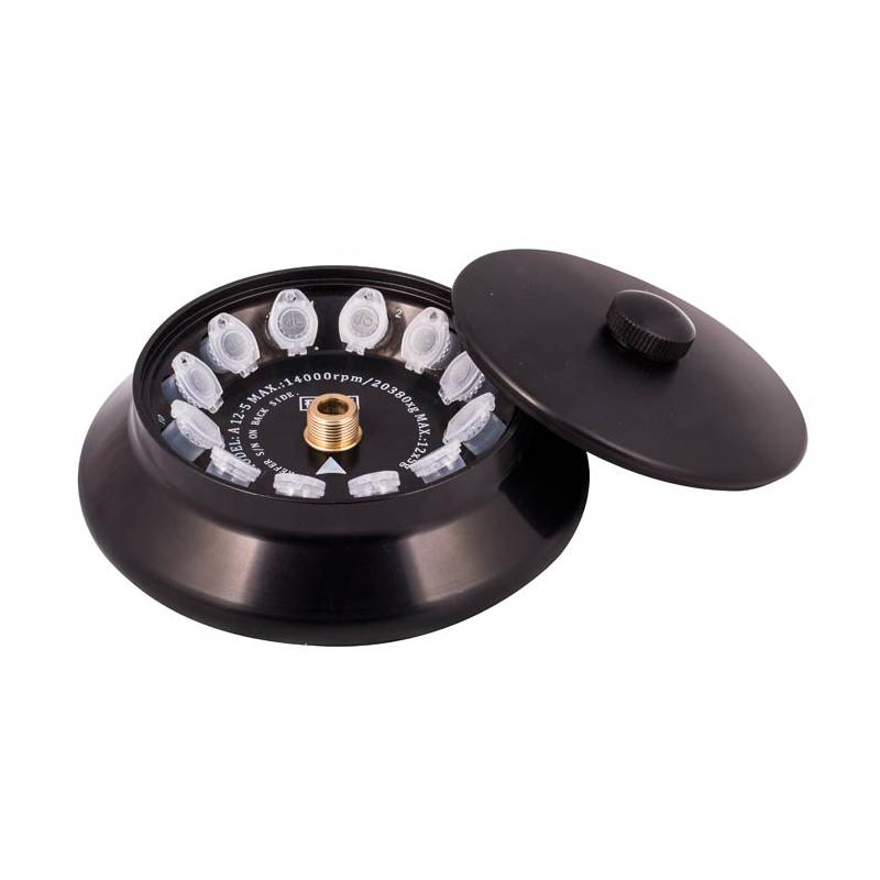 codice 40100832 / A 12-5 : Rotore ad angolo fisso 45° per provette tipo Eppendorf® da 5 ml, numero max per rotore 12. Velocità massima 14.000 rpm, accelerazione massima 20.380 xg. Fornito di coperchio di Biosafe. Max 12 provette.