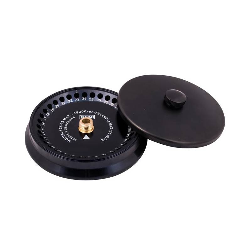 codice 40100852 / A 36-05 : Rotore ad angolo fisso 37° per provette tipo Eppendorf® da 0,5 ml, numero max per rotore 36. Velocità massima 15.000 rpm, accelerazione massima 21.000 xg. Fornito di coperchio di Biosafe. Max 36 provette.