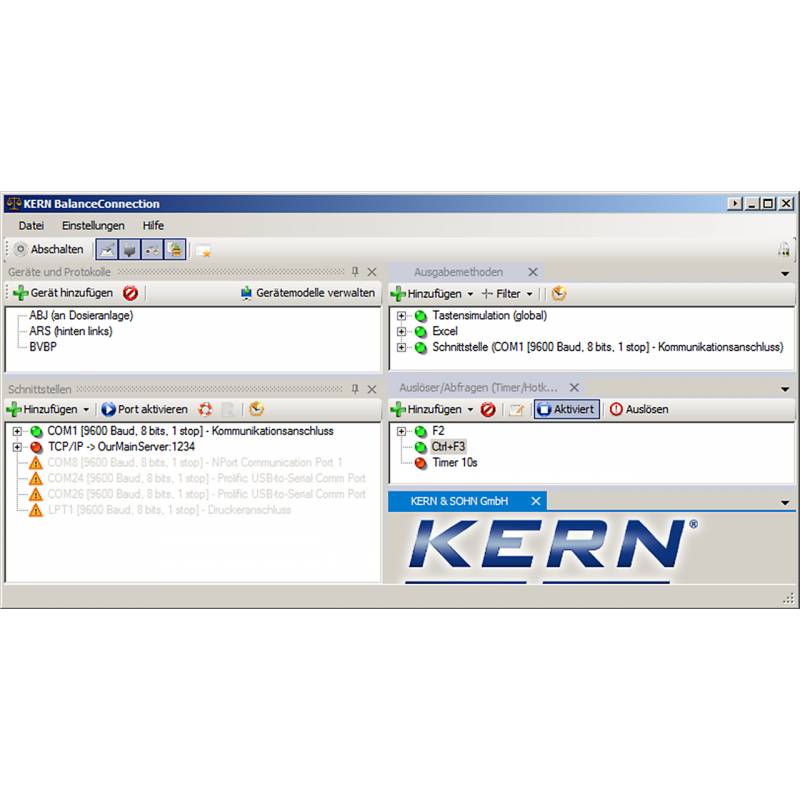 I protocolli di interfaccia delle bilance KERN (configurazione standard) sono già predefiniti. Possibilità di supportare altre bilance grazie alla configurazione flessibile.