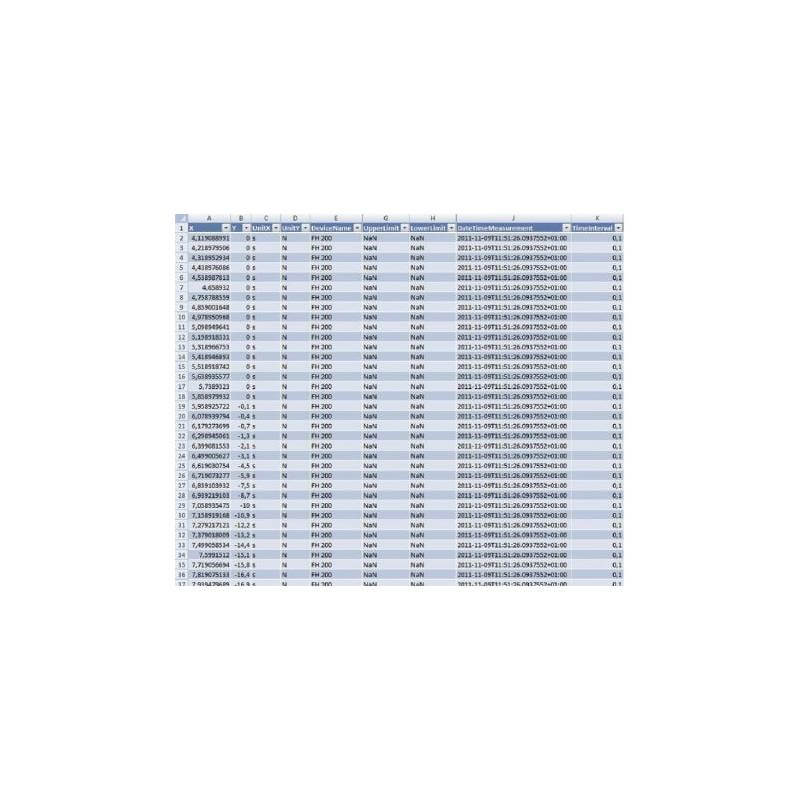 Questa trasmissione ad alta velocitá di trasferimento é possibile (fino a 20 dati al secondo) quando si associano con i misuratori di forza SAUTER (fino a 3 dati al secondo) e AFH FAST. Con il software AFH FAST si puó realizzare un grafico in relazione Forza-Tempo,e questi dati di misura possono essere esportati su MS Excel