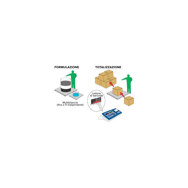 4 livelli di totale azzerabili e stampabili in modo indipendente: totale parziale, generale, gran totale, totale per articolo. Tara autopesata, preimpostabile (diretta o calcolata), manuale o automatica; funzione di annullamento automatico della tara a fine operazione di pesatura.