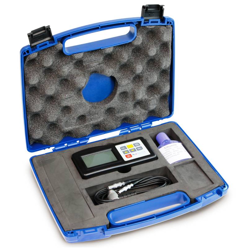 Compreso un sensore esterno (ideale per raggiungere punti di misura di difficile accesso), il TD 225-0.1US genera risultati di alta precisione in un intervallo di misura da 1,2 a 225 mm con una velocità del suono da 500 a 9000 m/sec. Le misure possono essere effettuate sia in pollici che in mm.